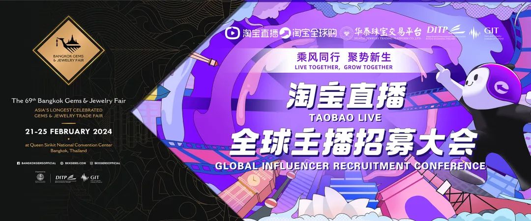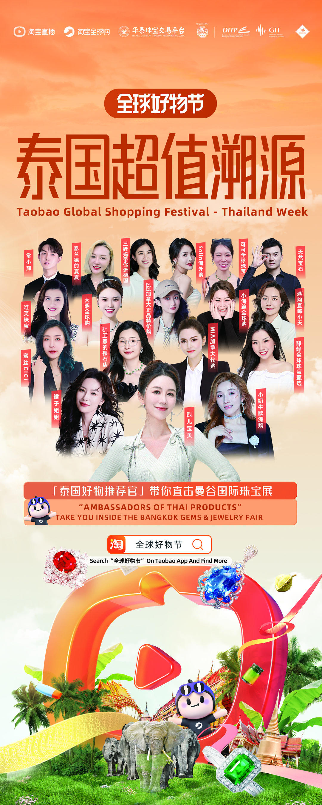 2024年2月19日-2月23日,一场聚焦中泰的直播电商盛事——“全球好物节:泰国超值溯源”活动如火如荼地展开中。此次跨境直播盛会由中国头部电商平台淘宝直播发起。泰国华泰集团联合主办,泰国华人青年商会承办,同时并得到了第69届曼谷国际珠宝展主办方泰国国际贸易促进司(DITP)和泰国珠宝学院(GIT)的大力支持,中泰电商平台共同打造了一场跨越国界的购物狂欢与文化体验之旅。