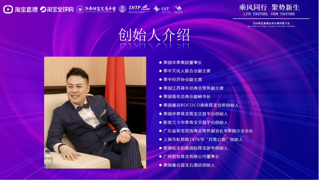 泰国华人青年商会李嘉淳会长表示,当前,中国提出的“一带一路”倡议作为推动国际经贸合作的重要引擎,已经促进了中泰两国在多个领域,特别是电商领域的紧密合作。随着数字技术的快速进步,泰中两国的电商交流合作变得日益频繁,不仅推动了商品和服务的跨境流通,也为人民提供了更多便利和选择。泰国作为宝石产业历史悠久且成熟的国家,与中国在宝石及珠宝产业的合作日益深化。此次青商会会员企业华泰珠宝交易平台通过淘宝-华泰这样的跨国电商平台合作在泰召开主播招募大会,进一步用实际行动推动了泰国传统宝石产业的现代化和国际化发展。同时也获得DITP(泰国商业部国际贸易促进司)、GIT(泰国宝石及珠宝研究所)的大力支持,更是为这一合作提供了坚实后盾支持。同时,此次活动的召开,也为更多人提供了了解和参与电商直播行业的窗口。不仅是对商品品质的深度追溯,更是电商直播行业创新实践和国际合作的一个新里程碑。青商会一直以来都积极鼓励会员企业大胆与国内知名企业合作开展多项活动,商会也会以多种层面对其进行帮助和宣传,以青商会独有的平台基础,为会员企业进一步发展扩大做好工作,同时,我们相信,此次,随着“全球好物节:泰国超值溯源”活动的持续进行,淘宝直播将会和更多包括青商会企业在内的海外企业,以更加开放的姿态,加强合作交流,推动着全球直播经济的发展。这不仅为泰国和中国之间的文化和商贸交流搭建了桥梁,也为全球消费者带来了更多优质的商品选择和消费体验。我们期待在未来,淘宝直播能够连接更多的世界,共享更加美好的未来,为全球直播经济带来更多的可能性和活力。