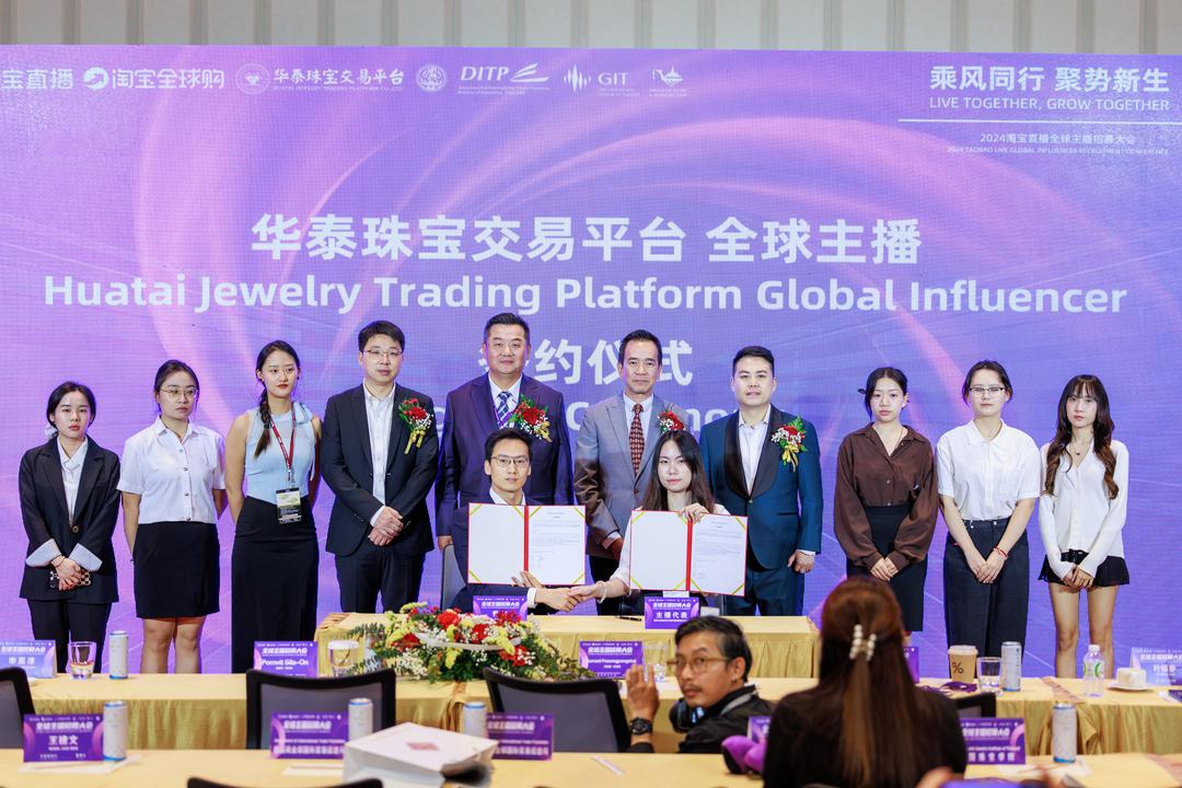 同时现场进行线上线下以“淘宝直播 & 华泰珠宝交易平台 线上线下主播合作协议签约”签约新主播达数三十余位,我们有理由相信,这些主播背靠淘宝直播,一定能取得值得期待的销售成绩。