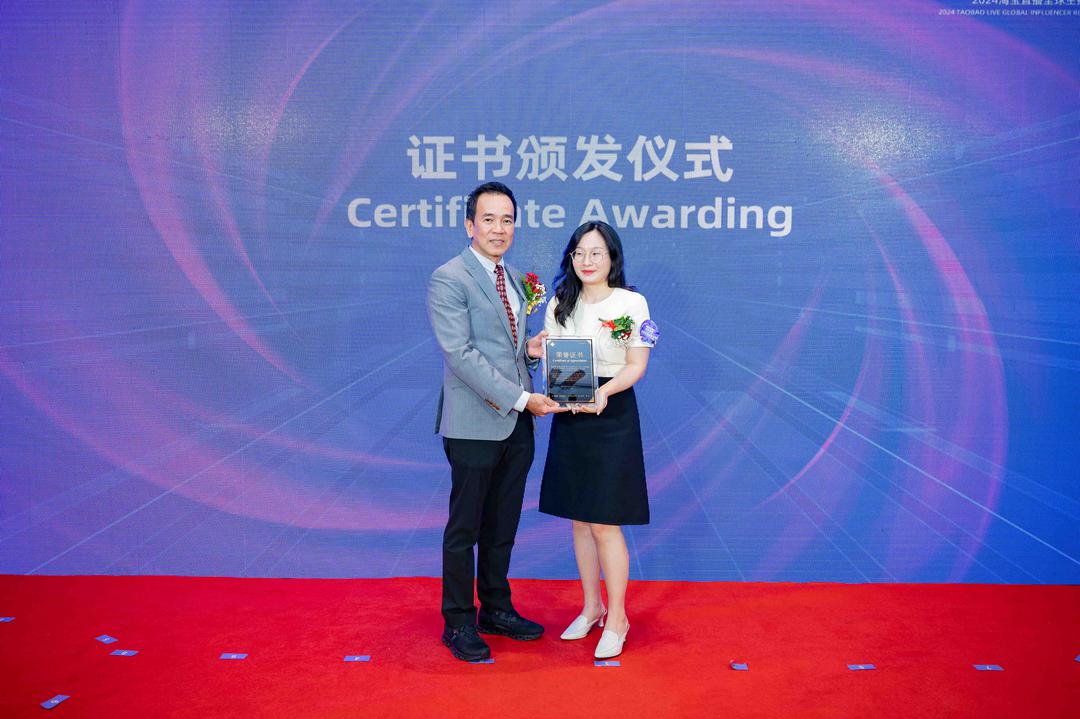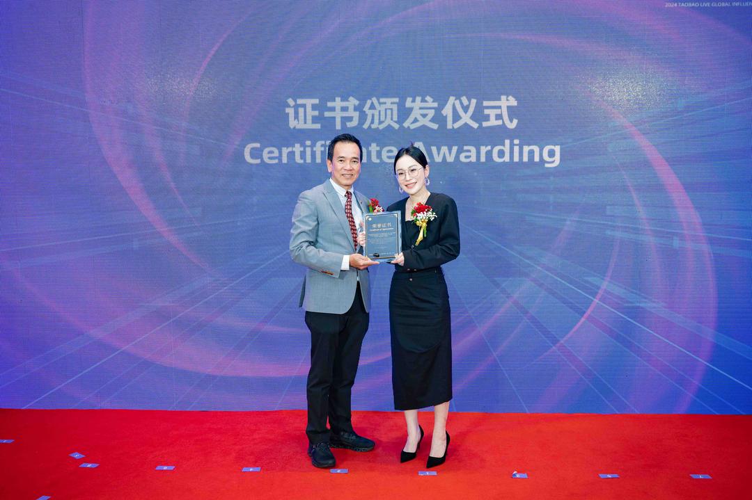 泰国珠宝学院 首席执行官 苏美德·巴松蓬先生为淘宝头部主播—李烈女士、张裙女士、廖一晗女士、黄婷女士四位KOL颁发泰国珠宝推荐官荣誉证书