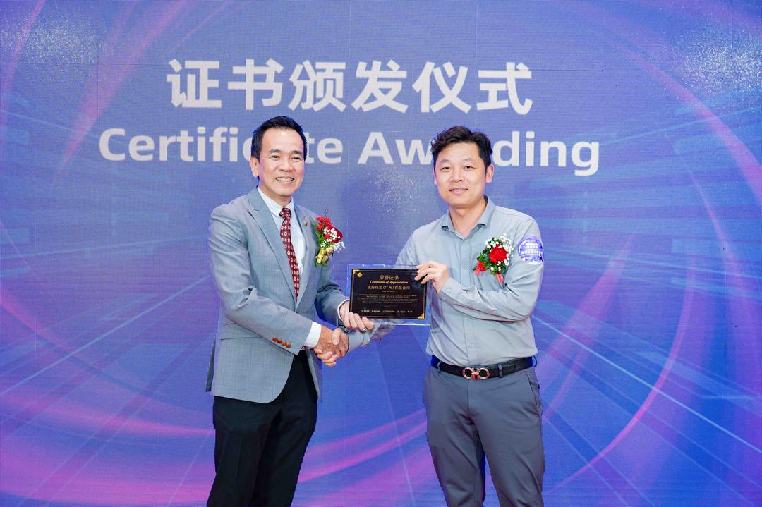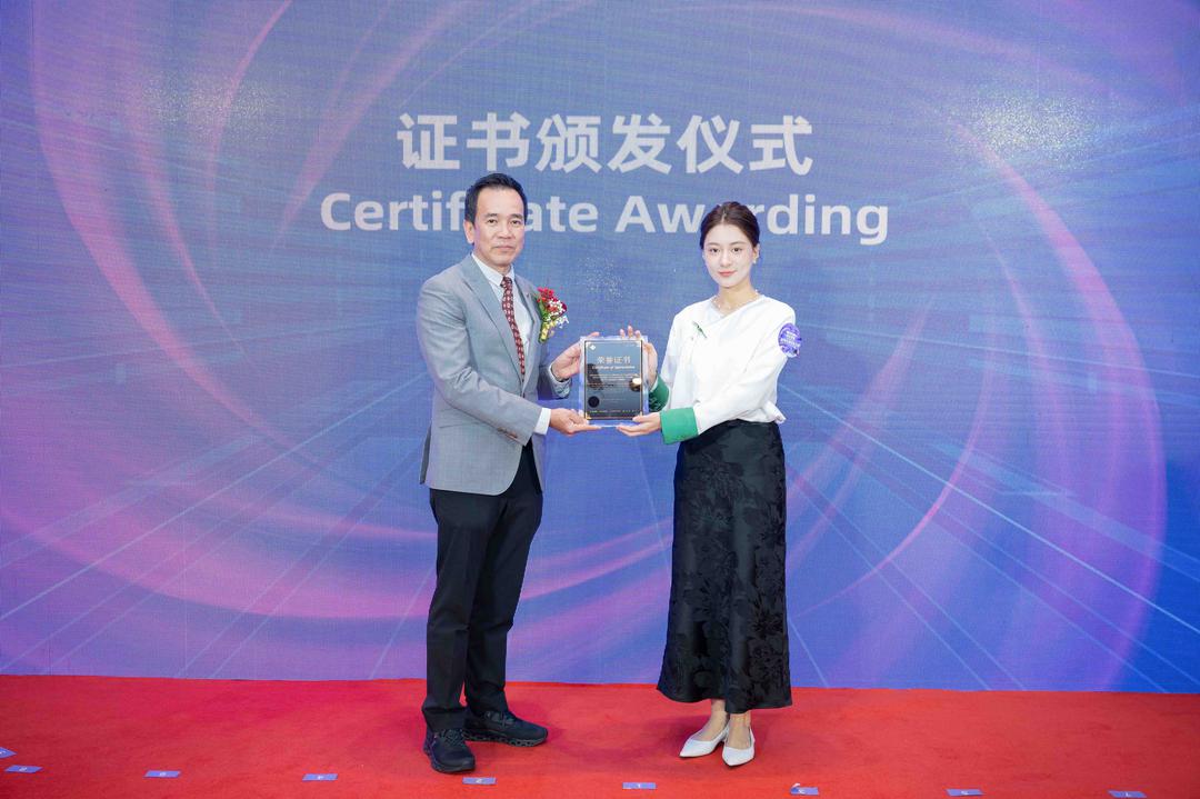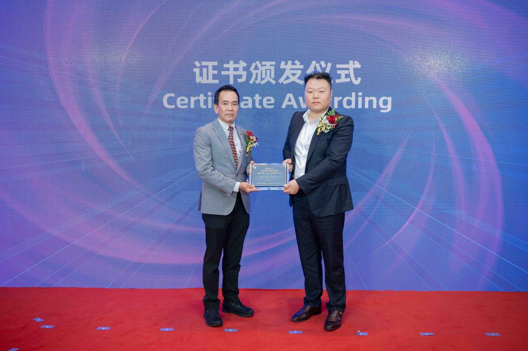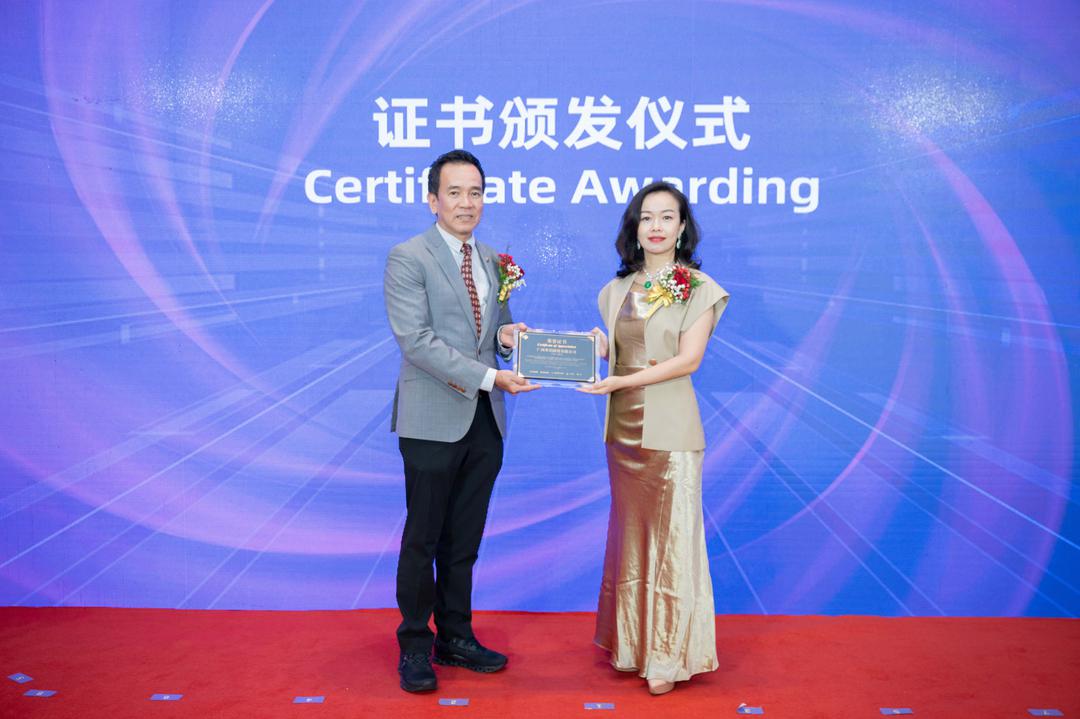 泰国珠宝学院 首席执行官 苏美德·巴松蓬先生为域骉控股(广东)有限责任公司、萃玥珠宝、诚好珠宝(广州)有限公司在内的三家企业颁发“泰国珠宝推荐商”证书