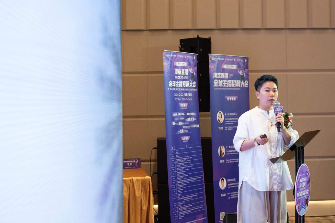 在此次曼谷举办的淘宝直播泰国主播招募大会的最后,还特别设立了全球直播产业专题分享环节,来自淘宝直播境外生态及淘宝全球购的负责人王一玫(蔓笛)和陈映润(灵隐),亲临现场,深入解析了淘宝直播对海外主播提供的巨大流量和激励政策。这不仅展现了淘宝直播对海外市场的重视,也为海外主播揭示了一个充满机遇的新世界。淘宝直播优秀主播代表——宝石矿工廖一晗的分享,向所有参与者展示了主播成长的可能路径和经验心得,这种分享不仅激励了现场的新晋主播,也为电商直播行业注入了新的活力和创新思维。