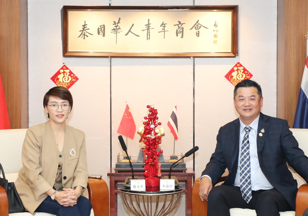 苏永君执行主席在致辞中非常感谢李嘉淳会长及各位领导的热情接待,她强调泰国华人青年商会是新华侨、新移民的代表性团体,许多会员都是行业精英,在各领域取得了优异的成绩。特别是青商会成立20周年之际,成功换届后,李会长继续传承老一辈华侨华人艰苦奋斗,开拓进取的精神,敢于创新,与时俱进。她还赞扬了李会长在协助中华总商会举办第16届华商大会时表现出强大的组织与协调能力,赢得侨界一致好评。此外,江浙商会最近受邀拜访泰国商务部谈判厅时,了解到泰国政府正积极推广绿色食品,尤其在奶业与奶制品方面,请李会长留意并推荐相关事宜。最后,江浙商会希望能与青商会多交流,多沟通,为双方的会员提供更多有利的商业信息和更广阔的平台。
