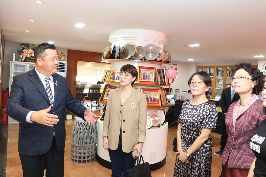 李嘉淳会长首先带领苏永君、李红执行主席一行参观青商会历史文化墙,向大家逐一介绍青商会成立23年来的重要事迹,并一同观看泰国华人青年商会成立20周年纪念片《不忘初心 砥砺前行》。
