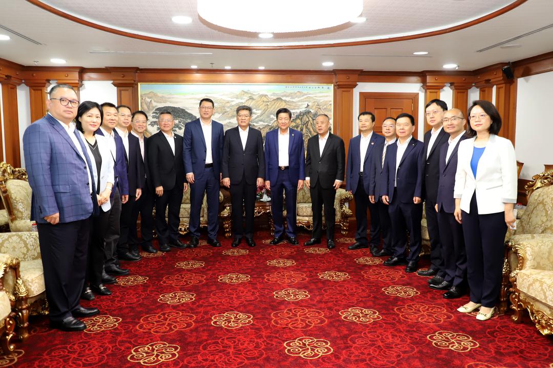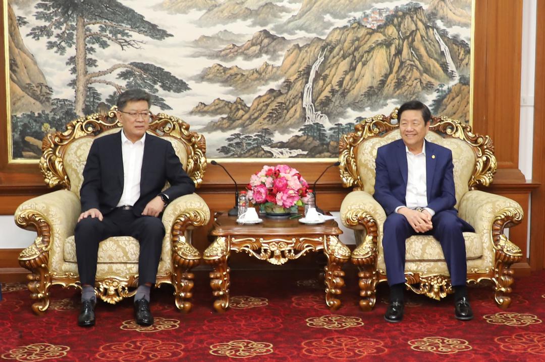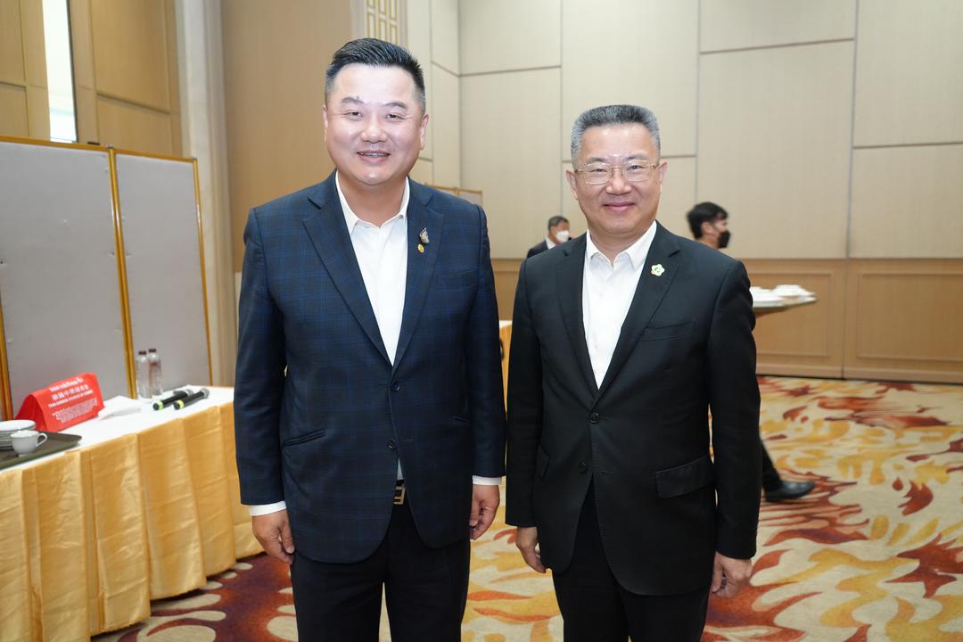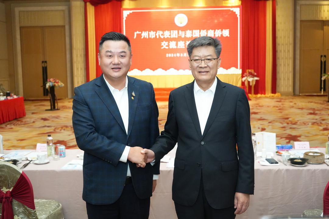 泰国中华总商会主席林楚钦(左)欢迎广东省委常委、广州市委书记郭永航(右)