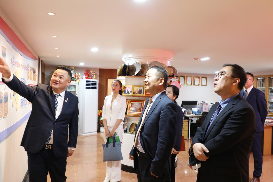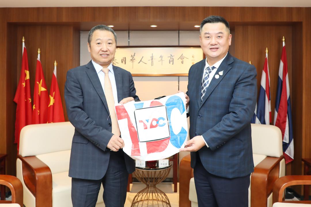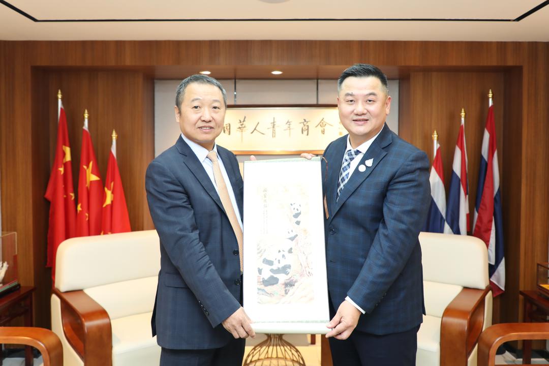 在座谈正式开始前,李嘉淳会长带领王志民院长一行参观青商会成立20周年历史文化墙,并一同观看泰国华人青年商会2020-2023会务活动纪录片《上场》,让来访团一行了解青商会近些年来各项会务发展情况。
