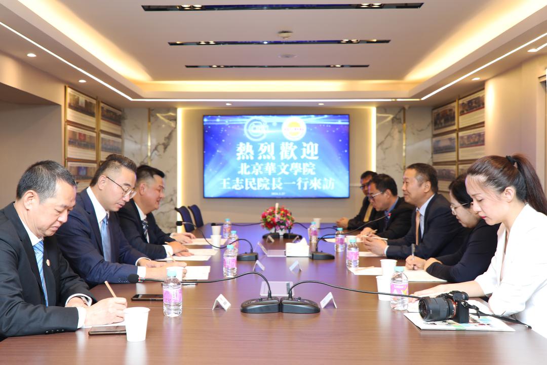 王志民院长在座谈中首先对李嘉淳会长一行的热情接待表示感谢,他说到,今天非常开心能够在青商会与李嘉淳会长及诸多优秀的华人青年人才进行交流,通过李嘉淳会长的介绍及短片的观看,我们也再次刷新了对青年商会的认识,我也理解到,青商会除了不仅仅是促进泰中两国商业发展的平台,同时也一直在为华文教育乃至中华文化的海外发展默默做着贡献,这一点,我对您及所有的青商会同仁表示深深地赞赏并表示感谢!