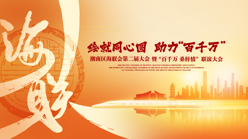 今天的潮南充满希望,今天的潮人斗志昂扬,我们作为海外的潮人,更应该发挥 自己的作用, 为家乡的发展贡献力量。这是一个属于我们所有潮人的时代, 让我们 共同期待,共同努力,让潮南 的故事在世界的舞台上绽放光彩!永泛浪潮!最后,再次预祝潮南区海外联谊会第二届大会暨‘百千万桑梓情’联谊大会,圆满成功。谢谢大家!