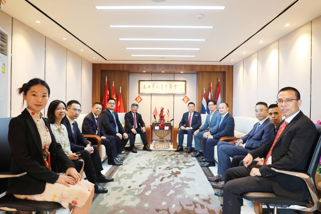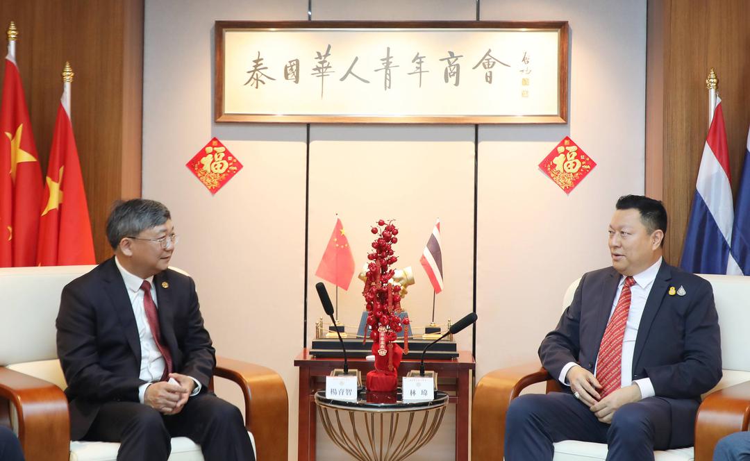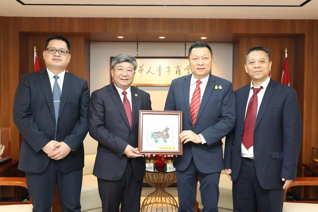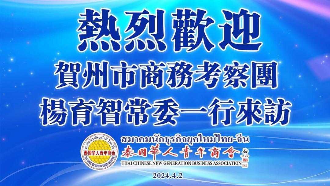 2024年4月2日,受李嘉淳会长委托,泰国华人青年商会常务副会长林玮于商会会议室欢迎接待广西壮族自治区贺州市委常委、统战部部长、广西壮族自治区侨联副主席(兼)杨育智一行来访,双方进行亲切问候并举行交流座谈。随团一同来访的还有:贺州市委副秘书长、市外事办主任李建存; 贺州市归国华侨联合会主席古广清;贺州市委统战部办公室主任李施宜;广西鑫之源再生资源有限公司董事长蔡娟;广西贺州市新东源岗石有限公司总经理韦发方;广西华泰药业有限公司副总经理廉家铭;贺州市恒轩木业有限公司总经理陈宇恒。 青商会副会长周小彬、黎孔林、魏勇;会长助理刘汉政;副秘书长黄湛声、阮必健;常委林政希;总干事李焕泽陪同接待。