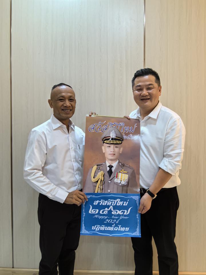 他提到,在过去的一年时间里,我们青商会成员很荣幸在素拉蓬·猜赞警中将的号召下,积极配合泰国警察总署有关部门,为泰国本地慈善福利事业等做了很多工作,今天十分高兴能够在2024年新年初始之际,邀请素拉蓬•猜赞警中将一起共进晚餐,共话情谊,总结过去一年的收获!也非常荣幸能够得到素拉蓬•猜赞警中将的信任与支持,继续任命我们青商会会内的12位成员成为督察顾问,我们也将继续发光发热,作为在泰公民的一份子,有义务为自己所在的国家及城市尽一份力,也请素拉蓬•猜赞警中将放心,青商会未来也将一如既往地的关心支持泰国警察总署的工作,遵纪守法,理解和支持警察的工作,携手维护我们共同家园的安定与和谐!