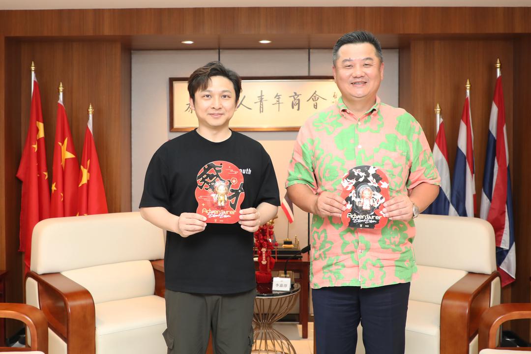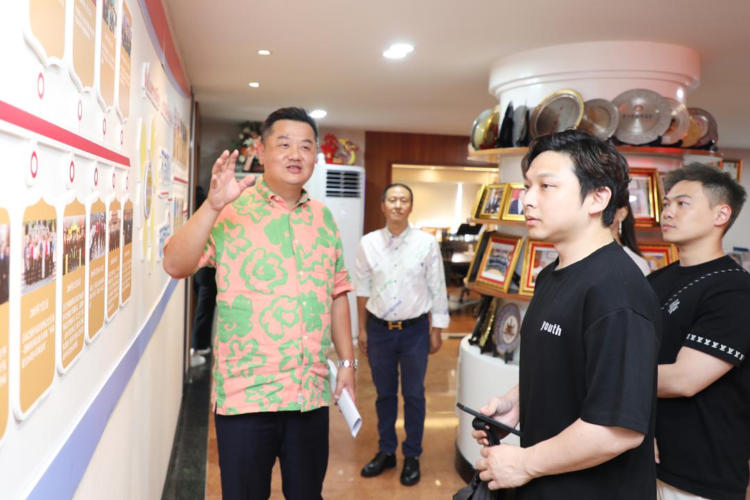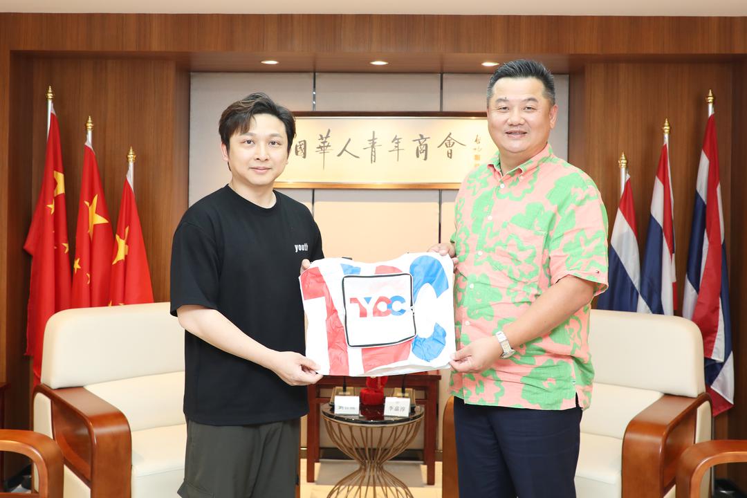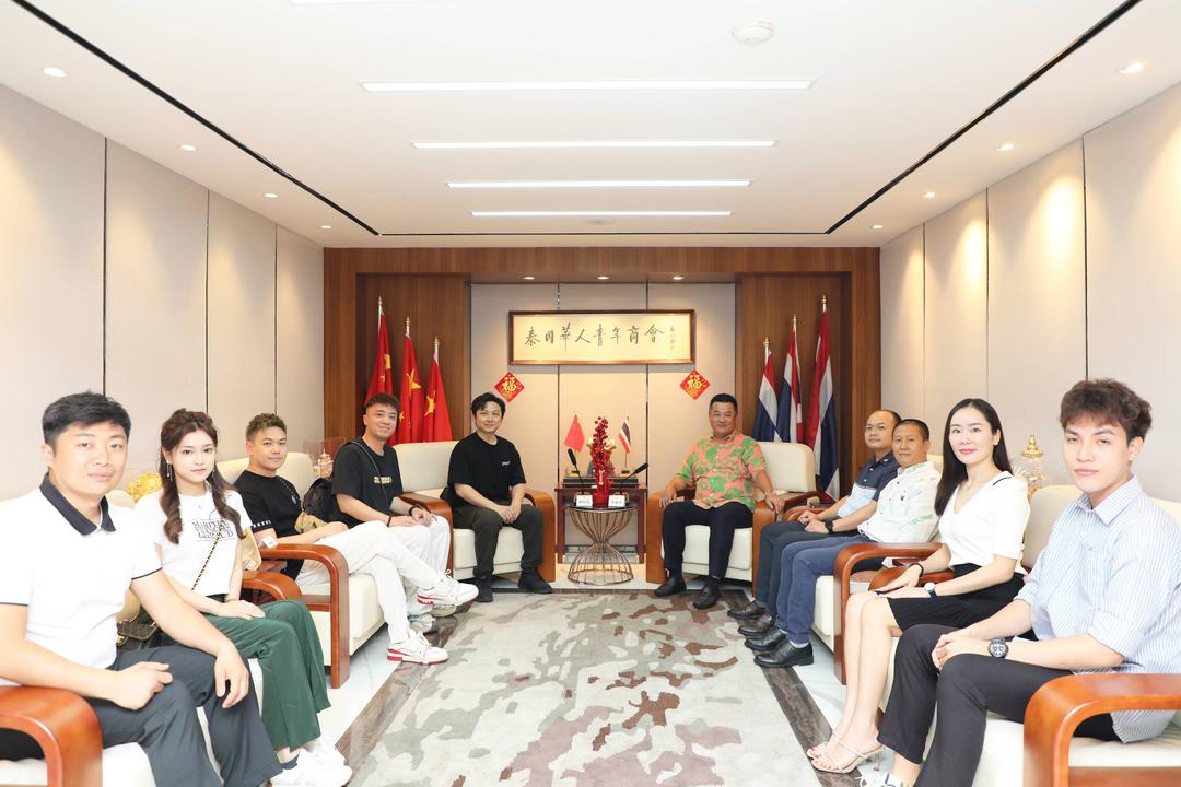 在座谈正式开始前,李嘉淳会长带领刘智龙委员一行参观青商会成立20周年历史文化墙,并一同观看泰国华人青年商会2020-2023会务活动纪录片《上场》,让来访团一行了解青商会近些年来各项会务发展情况。
