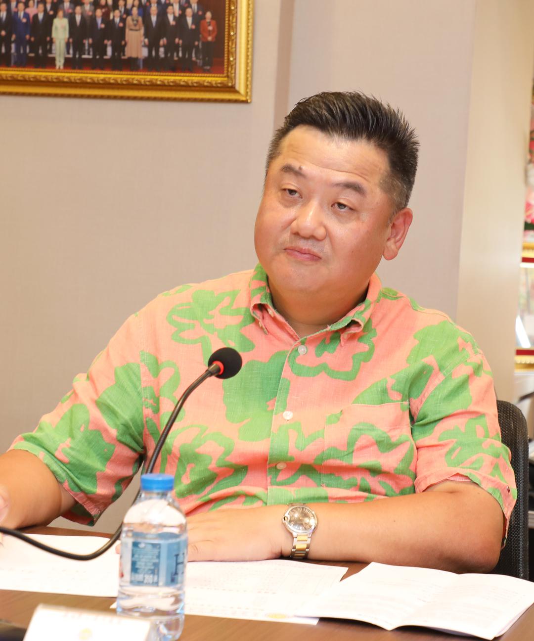 他首先提到,刘智龙委员的父亲刘艺良主席与青商会深有渊源,因为我们青商会创会会长李桂雄永远名誉会长与刘主席一直以来关系甚好,刘艺良主席作为中国侨联副主席,自青商会建会以来,关心关爱我们各项会务发展,给予我们巨大的鼓励和支持。他补充说到,刘艺良主席是我们泰华侨界的老朋友,是澳门繁荣稳定发展的重要参与者和见证人,他以自身力量一直持续努力搭建了澳门与“一带一路”沿线国家、地区友好合作的桥梁,多年来为祖国的和平统一大业、公共外交和侨务事业做出了重要的贡献,我们对您父亲一直以来的付出表示由衷的敬佩!同样,今天也很欣慰,能够看到以刘智龙委员为代表的澳门爱国青年团体,出访海外,来到泰国,延续父辈所铺垫的基础,为新时期下,为澳门与泰国华人青年乃至泰国本地青年间的友好交流,为促进“泰中一家亲”的友好关系深化发展努力探索,加强交流,我们也希望能够通过今天的座谈,能够继续加强泰澳两地区青年人才之间的交流与互动,为以后的协作发展做好铺垫及桥梁工作。
