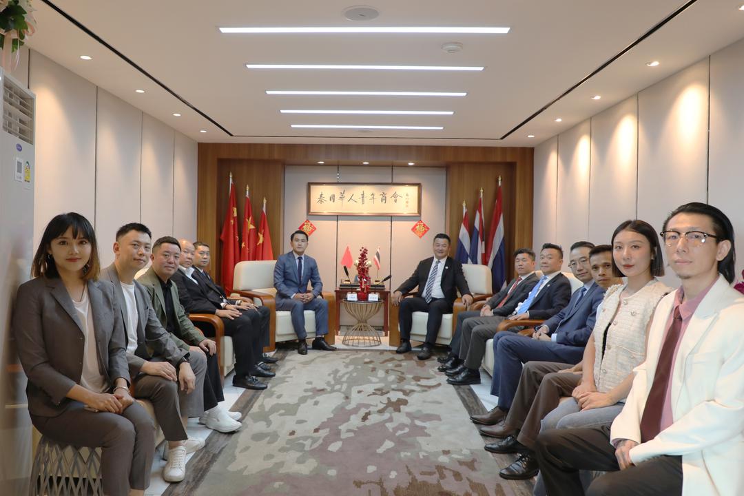 2024年4月9日,泰国华人青年商会会长李嘉淳于商会会议室欢迎泰国贵州商会会长刁刻佳一行来访,双方进行亲切问候并举行交流座谈。一同来访的泰国贵州商会成员还有:常务副会长邱谦、荣誉顾问奔亚思·灿猜楚翁、肖启华、副会长先越、副会长兼秘书长王崇东、副秘书长温馨、执委锌兰、张诸俊、潘亚如。青商会参与接待的成员还有:常务副会长姚鸿春、副会长陈柱、魏勇、会长助理刘汉政、副秘书长黄湛声、罗育豪、常务委员林政希、总干事李焕泽。
