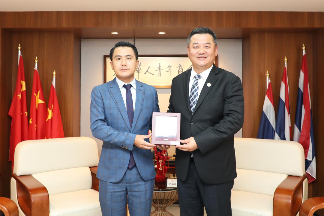 他介绍到,泰国贵州商会是2017年成立,作为团结凝聚贵州在泰黔籍侨胞、侨商、企业家、乡亲的年轻侨社。近年来,在贵州省政府、侨联侨办、工商联和商务厅等单位和机构的指导下,特别是在泰国中总和老一辈华商侨领的帮助下,泰国贵州商会成长迅速,会务不断发展,并取得了不错成绩。他提到,非常荣幸,今年3月初,我被泰国贵州商会第一届理事会选举为第二届理事会会长一职。作为黔泰沟通往来的桥梁,我们贵州商会十分重视与泰国各领域的合作和信息交流,在我就任后的第一时间,我率领商会成员先后前往拜访了中国驻泰使馆、泰国中华总商会、此次前来青商会是我们的第三站,同时也希望通过此次座谈,能与青商会更进一步加强友好关系,构建黔泰经贸等多领域合作新格局,促进两地经济繁荣共进。