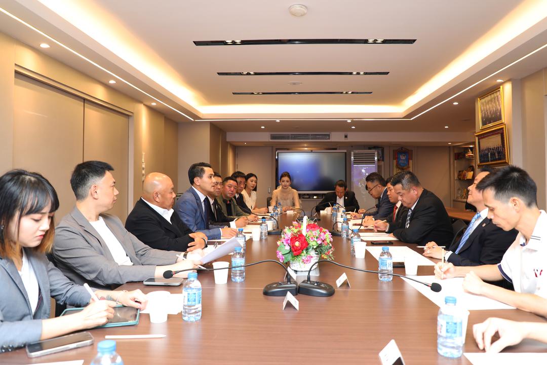 在座谈正式开始前,李嘉淳会长带领刁刻佳会长一行参观青商会成立20周年历史文化墙,并一同观看泰国华人青年商会2020-2023会务活动纪录片《上场》,让泰国贵州来访团一行了解青商会近些年来各项会务发展情况。