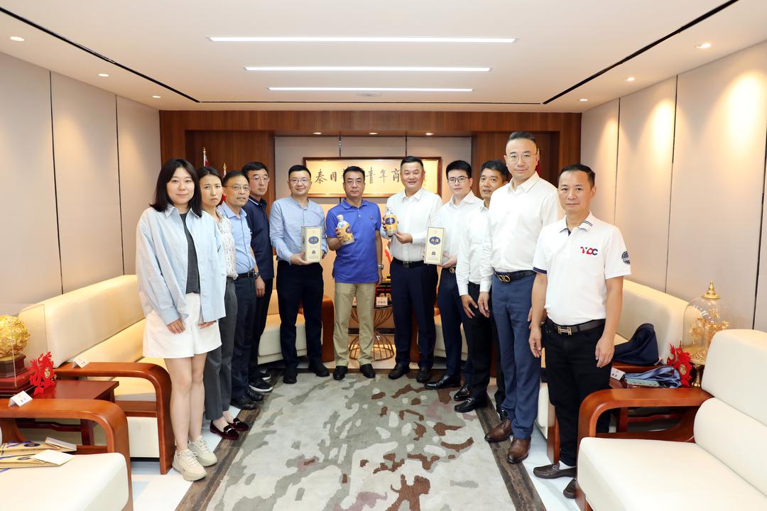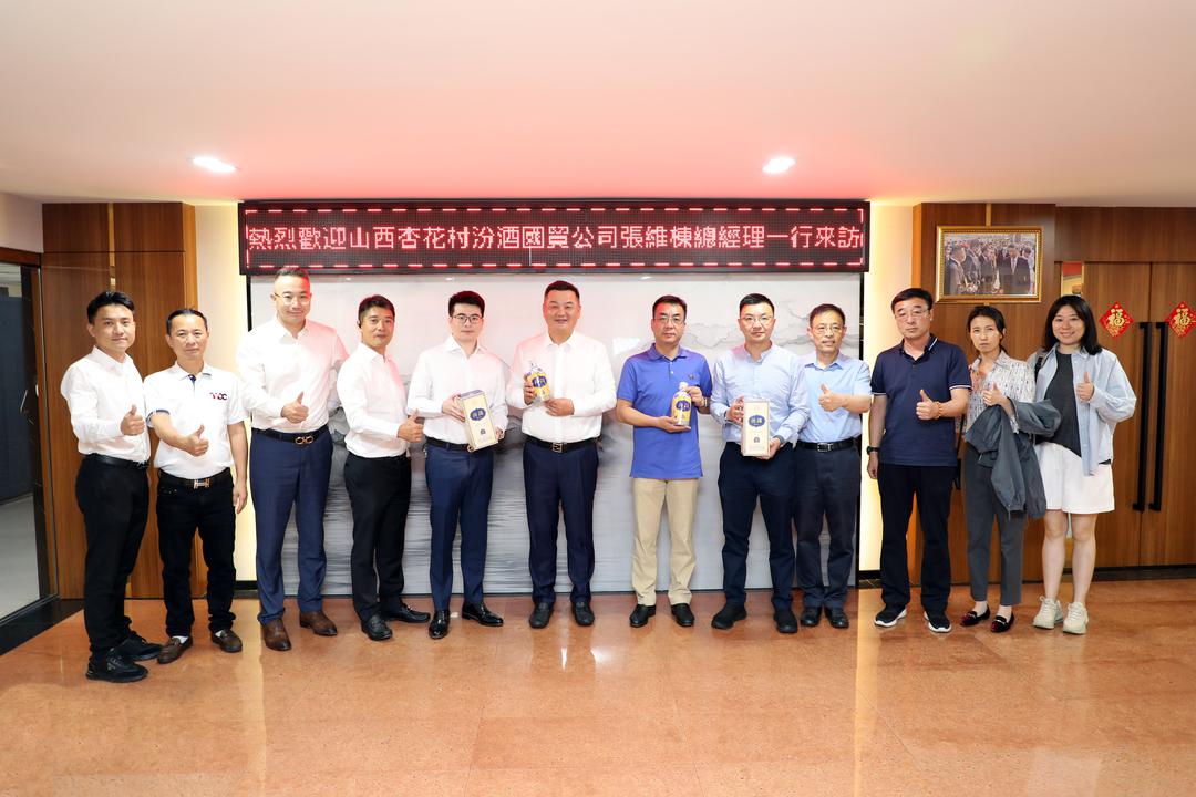 座谈寒暄后,李嘉淳会长和张维栋总经理互赠纪念品,张维栋总经理向李嘉淳会长特别赠送了山西杏花村汾酒纪念款,众人合影留念。