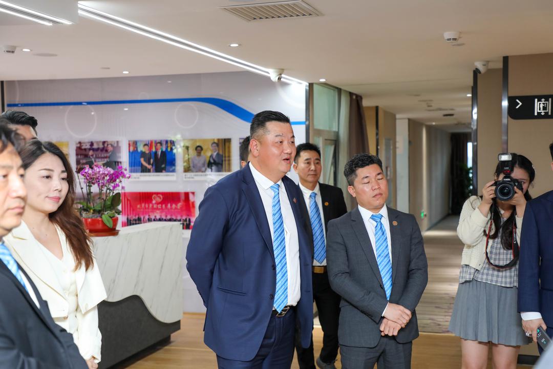 在座谈正式开始前,北京潮商会周建轩执行会长首先带领青商会访问团一行参观北京潮商会会址及发展历史。让大家更好的了解北京潮商会的发展情况。