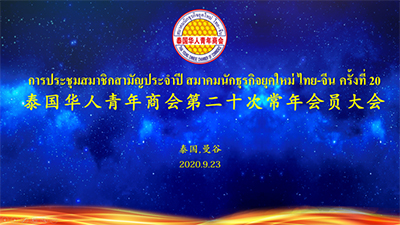 泰国华人青年商会第二十次常年会员大会于2020年9月23日晚,假泰国中华总商会大厦光华堂成功召开。泰国华人青年商会第十届执行委员会李桂雄、黄增滨、李嘉淳、林深、林嘉南、陈秋雄、邝锦荣、宁禾、林兆祥、陈玉宝、林玮、刘龙、锺和武、郑树丰、谢崇通、陈平、林启扬、陈汉国、罗欣迎、李宛情、李大成、杨艳峰、姚鸿春、黄少林、陈仕扬、林扬刚,史大佗、陈金敦、许晓东等近两百位会员出席。名誉会长、泰华著名主持人方舫主持本次会员大会。