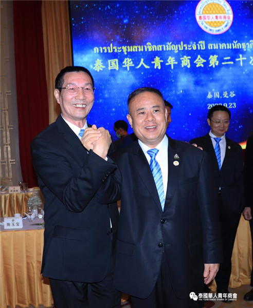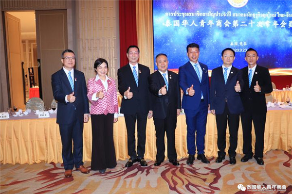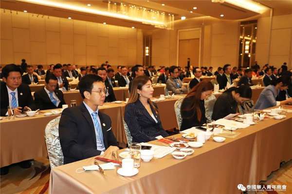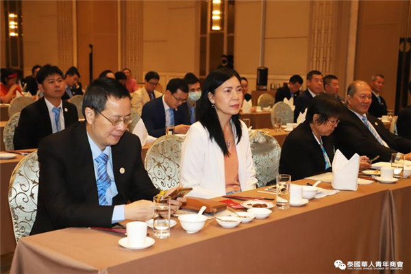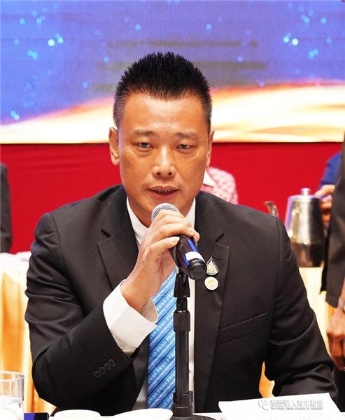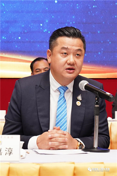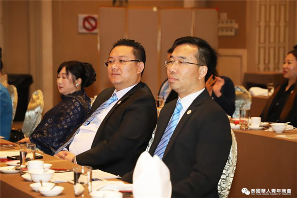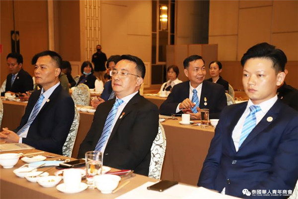 习近平新时代中国特色社会主义思想引领世界,“一带一路”建设惠及全球,为海内外华侨华人带来了巨大的发展机遇。中国不但是我们一直怀念的故土,是我们要回报的地方,中国改革开放经和济建设的快速发展与深化,更是我们的依靠。今年是泰中建交45周年,泰国华人青年商会成立20周年,我们要以此为契机,用实际行动支持、筹备庆祝泰中建交45周年活动。我们要不忘初心、团结奋进、加倍努力,继续弘扬、传承中华优良传统文化,延续青商会创会的宗旨,树立新侨群体好榜样和发展方向,不断学习老一辈华侨华人刻苦耐劳、拼搏创业的精神,提高青商会同仁的经济实力和地位,共同分享我们的智慧、经验,我们要统一思想、抱团互助,更好的发挥桥梁和纽带作用,做好泰中友好使者,讲好中国故事,维护泰中友谊,促进两国经贸合作与文化交流,积极参与祖国、家乡的经济建设,立场分明的支持祖国和平统一大业,做好公共外交事务,共享京津冀协同发展、长三角一体化、建设粤港澳大湾区、海南自由贸易港等,祖国创新发展的新机遇,共建新侨命运共同体,为泰中两国的友好往来及各领域合作做出新的更大贡献。