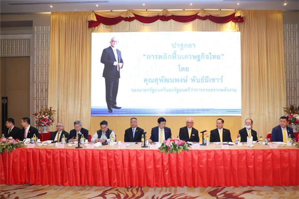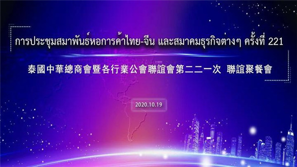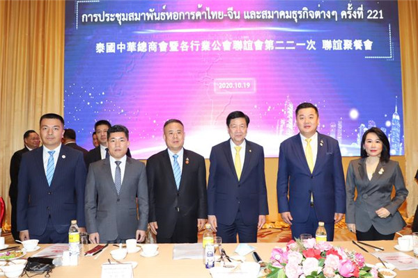泰国中华总商会暨各行业公会聚餐联谊会第221聚餐会于2020年10月19日上午十时在泰国中华总商会九楼光华堂举行。泰国国务院副总理兼能源部长素帕塔纳鹏·潘密操阁下出席此次的联谊会,并在会上发表题为“恢复泰国经济” 演讲泰国中华总商会暨各行业公会联谊会主席林楚钦先生致欢迎辞,泰国中华总商会暨各行业公会联谊会副主席兼执行主任、泰国华人青年商会会长李桂雄先生致辞。本次联谊会作东单位有:泰国华人青年商会、 泰国缝业公会、 泰中工商业联合总会、泰国安防协会、泰中吉林总商会、泰国泉州晋江联合总会。
