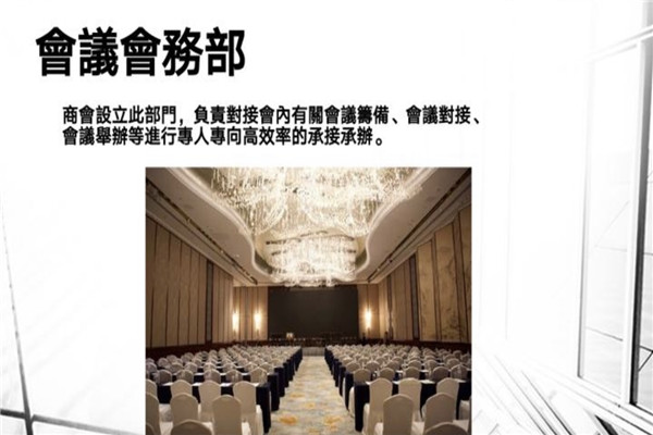 7、会议会务部:商会设立此部门,负责对接会内有关会议筹备、会议对接、会议举办等进行专人专向高效率的承接承办。