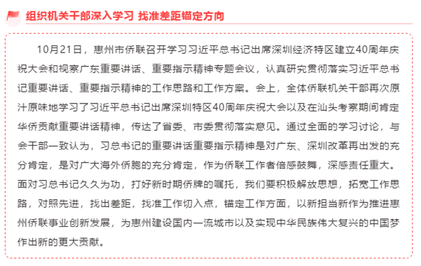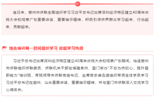惠州市侨联全面组织学习习近平总书记重要讲话重要指示精神 迅速掀起侨界学习热潮