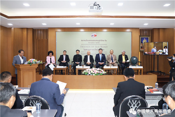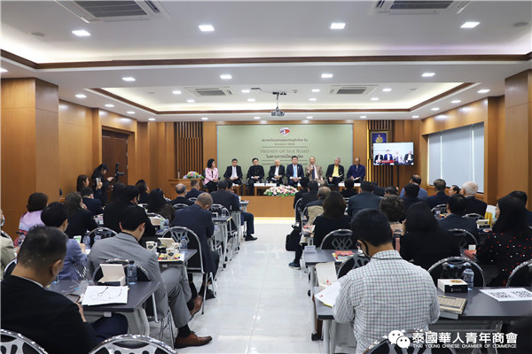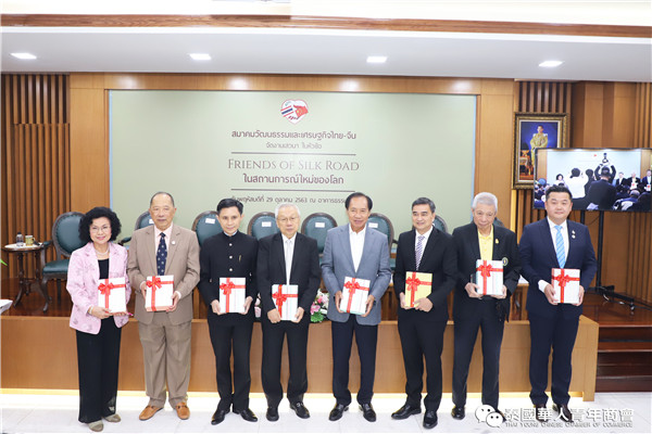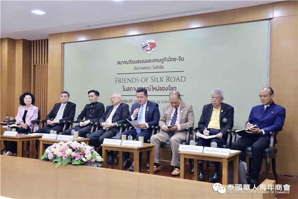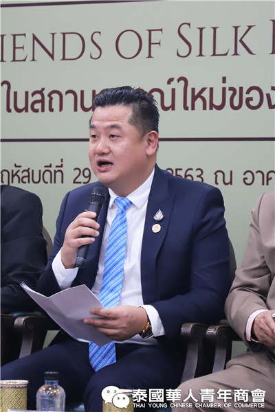 由中共中央宣传部支持、泰国文化经济协会主办的 “中国共产党成立100周年和新时期新世界丝绸之路之友” 研讨会,于2020年10月29日在泰国曼谷隆重举行。大会主席、泰国国会前主席颇钦·蓬拉军,泰国国务院前总理阿披实·维乍集瓦,泰中战略研究院主席苏拉实·塔纳诺唐,国务院事务部部长助理梭拉信·戴节甲朴,著名节目主持人邦贴·普阿蓬潘,泰中关系学者那隆· 绰瓦塔纳,泰中文化经济协会常务副会长沛汕·披差蒙空等近60位泰国各界代表参加研讨会,国会前副主席拉丽达•勒萨堪博士主持研讨会。泰国华人青年商会候任会长李嘉淳、副会长陈平、常委钟慕岳、马兴海等应邀出席会议。
