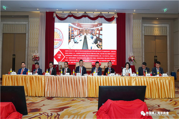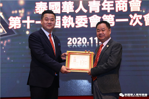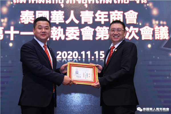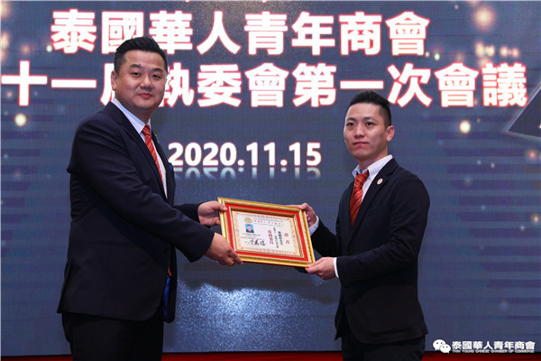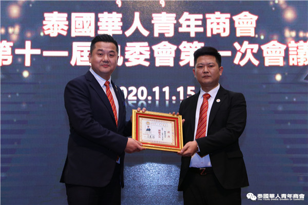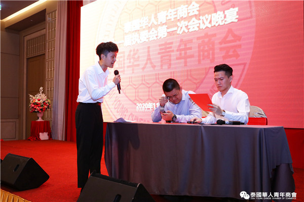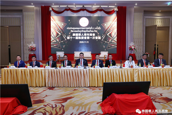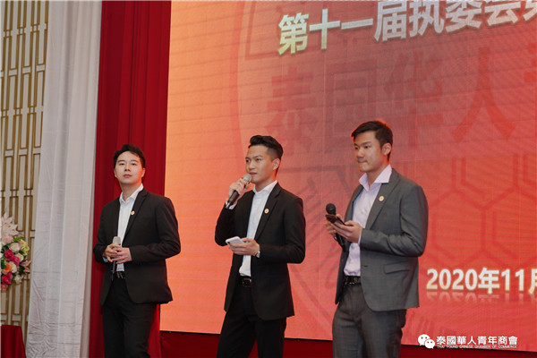 泰国华人青年商会第十一届执行委员会第一次会议于2020年11月15日晚,在曼谷中华总商会光华堂隆重召开。会上,李嘉淳会长首先致辞,并举行财务交接仪式,会议通过了财务报告、会务报告,常务副会长林玮、陈秋雄、刘龙、陈玉宝、姚鸿春、陈平、林扬刚、史大佗、陈汉国等近200位常执委出席会议,会议由常务委员赵子杰主持。