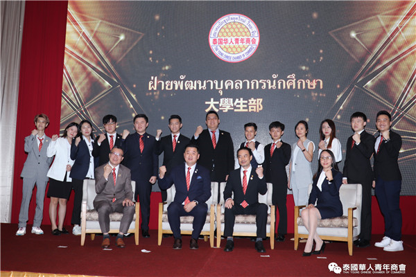 李嘉淳会长作为召集人介绍大学生部:在泰留学生目前大约有4万人,留学生是中国沟通世界的桥梁,当代大学生拥有创新的思维、宽广的视野和定位。去年我们青商会协办的几次大型会议,大学生给我们提供了重要的人员支持。建立此部的目的主要从3方面,第一可以给我们商会提供丰富的人材资源,第二是想经过参加活动让他们能有实质的工作经验和沟通能力。第三经过参加活动,可以提供一个企业和个人双向选择的机会,尽量让他们学有所成,能够留在泰国,继续在泰国发展。