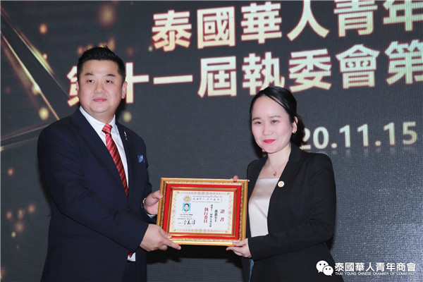 会上,李嘉淳会长为在场的副秘书长、主任委员、常务执行委员、执行委员颁发了任职证书。会议现场气氛热烈,大家纷纷表示,随着“一带一路”倡议的实施和“中国—东盟自由贸易区”的启动,拥有着独特地理优势的泰国成为重要枢纽,未来泰中两国在经贸合作领域会有很大机遇,大家对商会未来的发展充满了信心,相信在新一届,在大家的共同努力下,青商会的未来将会更加蓬勃发展!