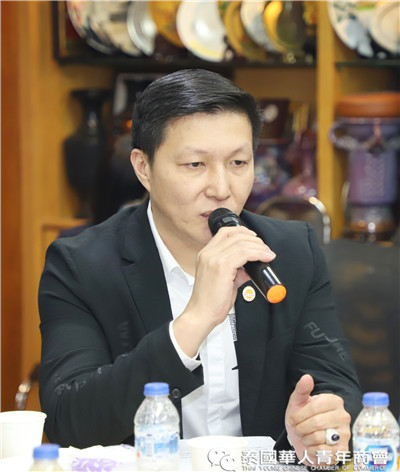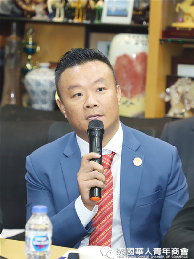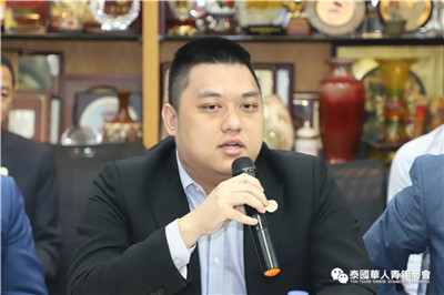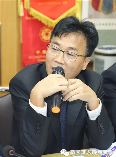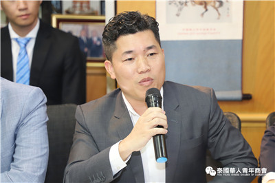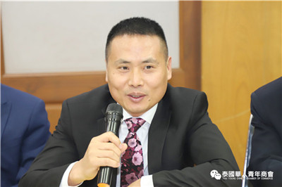座谈交流环节,泰国华人青年商会会长李嘉淳、常务副会长林玮、姚鸿春等分别就珠宝贸易、再生能源、绿色能源、广告、食品、乳胶加工、乳胶枕头、床垫等多个行业进行了简单的分享;泰国浙江商会会长祁晓云、执行副会长邱小海、楼朝唐、倪立军等就印刷包装设备及材料供应、工业地产开发、工业园区招商、商贸城开发、房地产开发等方面进行介绍,大家纷纷表示,虽然我们来自各行各业,为了各自的事业在打拼奋斗,今天为了共同的目标坐在一起参加此次座谈会,希望在未来,大家互相抱团、互相走动,互相帮衬、抱团共赢,为承担社会责任,发挥正能量,抓住疫情后贸易投资新机遇,共建新侨命运共同体。