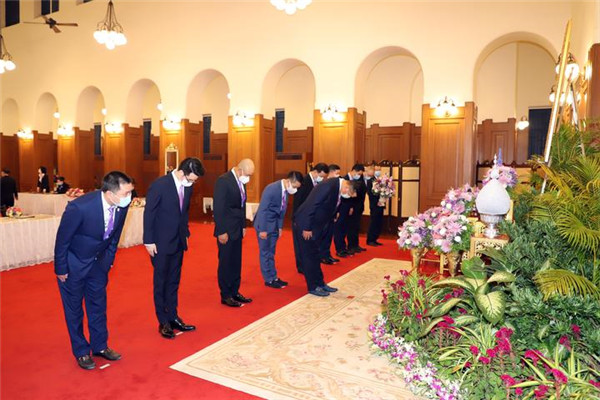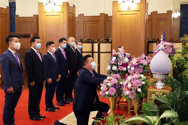 2月4日上午9时,泰国华人青年商会会长李嘉淳率领常务副会长姚鸿春、副会长李大成、周桂扬、廖以良、刘吉辉、陈耀盛、黄立雄、会长助理陈世岳、常务委员马兴海、总干事李焕泽等晋宫向皇妹诗琳通殿下懿像献花致敬,签名恭祝诗琳通殿下早日康复,懿体康健。
