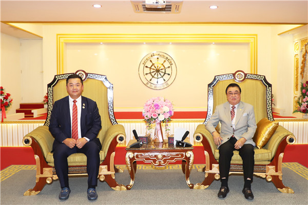 拜访团一行抵达泰国潮州会馆时,受到黄迨光主席等领导的热情接待。黄迨光主席用潮语热情洋溢的介绍了泰国潮州会馆的悠久历史和发展现状,引用“自己人”、“侨批”和“功夫茶”的特定意义,充分显示“潮”字背景的乡族亲情!黄主席表示李嘉淳会长以先进创新的办会理念带领商会,会务定能长足发展,越办越好!希望年轻一辈要不忘初心、、以根为本、热爱祖国、热爱家乡。李嘉淳会长表示自己就是“吃着侨批长大的”,深刻的理解泰中一家亲源远流长!李会长感谢黄迨光博士等诸位领导对青商会一直以来的支持与鼓励;并表示希望往后能够向前辈侨领多多学习经验,做好会务工作! 今天,值此中华民族传统佳节来临之际,特来贵会向黄迨光主席暨诸位领导拜个早年,恭祝黄主席暨诸位领导前辈,阖家新春快乐,身体健康,家庭幸福,吉祥如意!