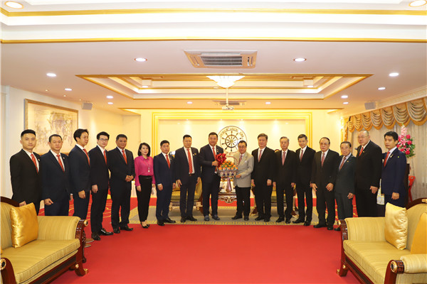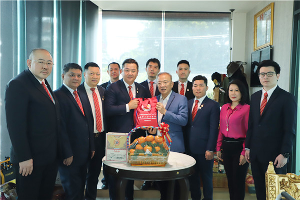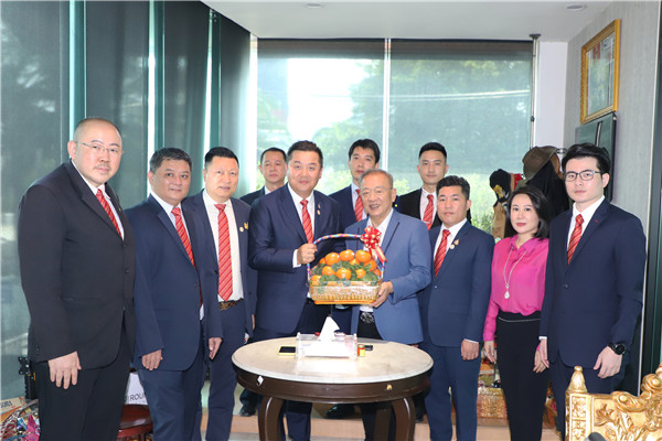 李嘉淳会长一行首先前往泰国中华总商会拜年,受到林楚钦主席、李桂雄副主席等的热情接待!林楚钦主席对李嘉淳会长领导下的新届执委会工作肯定与鼓励!他表示李嘉淳会长年轻有为,自接任起来,青商会会务发展良好,希望我们两会加强合作,继续携手并进为泰中友谊、经贸发展、文化交流做出贡献。林主席向青商会同仁送上新春礼品并致新春的良好祝愿。李嘉淳会长感谢林主席等中总各位领导前辈一直以来对青商会各项事务的关心与支持!青商会以中华总商会的各位前辈为榜样,推动青商会与中总更加紧密的合作,为促进泰中友好、泰华侨社和谐及两国经贸投资、做出应有的贡献。值此新春佳节来临,特敬呈大吉拜个早年,祝福林主席暨诸位领导前辈新春愉快、身体健康、家庭幸福、如意吉祥!