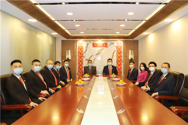 拜访团向泰华进出口商会林齐锐理事长等领导拜年,受到各位领导的热情接待与欢迎!共同观看了泰华进出口商会发展活动的纪录片,了解了泰华进出口商会悠久的发展史!林齐锐理事长致词赞扬青商会20年来在李桂雄会长的领导下所取得的成绩,并肯定李嘉淳会长接棒新届会长定能领导商会精英继续为泰华社会做出贡献,希望两会能更好的加强合作,携手共进。祝愿大家牛年大吉大利,身体健康!李嘉淳会长感谢林齐锐理事长和诸位领导一直以来对青商会发展的大力支持。他说:今天我们年轻一辈向前辈拜访学习,希望各位领导前辈继续支持与指导,值此新春佳节来临,向各位前辈拜个早年,恭祝林理事长和诸位领导,新春愉快,身体健康,家庭幸福,万事如意!