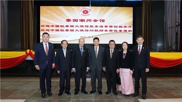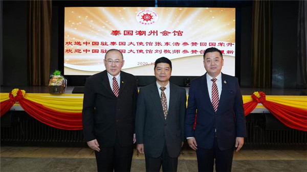 2月4日,中国驻泰国大使馆张东浩侨务参赞奉调回国荣升、刘敬师侨务参赞莅泰履新,泰国潮州会馆举行迎送仪式,泰国华人青年商会会长李嘉淳出席。期间,李嘉淳会长感谢张东浩参赞为推动泰中友好合作,促进泰华社会和谐,为中国侨务事业做出的贡献,特别是在泰5年间,对泰国华人青年商会同仁的关心和大力支持。李嘉淳会长代表泰国华人青年商会向刘敬师参赞莅泰履新表示热烈欢迎,并向刘参赞简介了青商会的概况,希望刘参赞在今后的工作中,给予泰国华人青年商会多多指导和帮助,共同促进泰中友好关系不断发展!