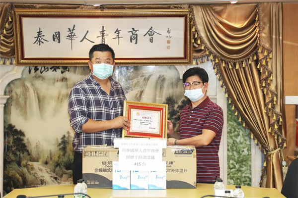 目前,正值泰国疫情防控的重要时期,2021年3月9号,泰国华人青年商会主任李华旺、执委金生健向商会捐赠额温枪415部,助力泰国华人青年商会支持泰国疫情防控工作。李嘉淳会长亲自接领,并向李华旺主任、金生健执委的良行善举表示衷心感谢!
