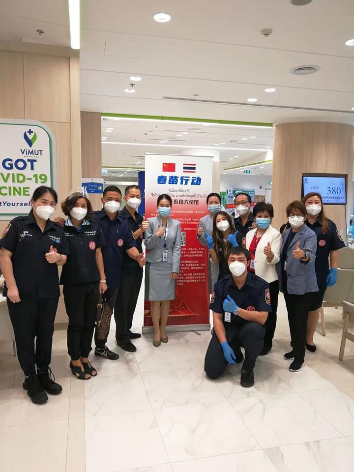 目前,泰国新冠病毒肆虐,市场、商场、建筑工地、监狱等多地集中爆发疫情,连日来累计确诊病例达近19万例,大家都盼望早日接种疫苗,期待走出疫情的阴霾。自5月20日“春苗行动”在泰正式实施以来,每天都有数百名在泰中国公民顺利完成第一剂疫苗接种,部分人员已经完成两针接种;对于来之不易的疫苗,现场接种同胞们难掩兴奋喜悦之情,纷纷表示在泰国疫情严重时期,能及时接种到来自祖国的疫苗倍感振奋和自豪,感谢党和政府的关心关爱,感谢使馆的不懈努力,让在泰同胞打上了“强心针”,增强了战胜疫情的信心。