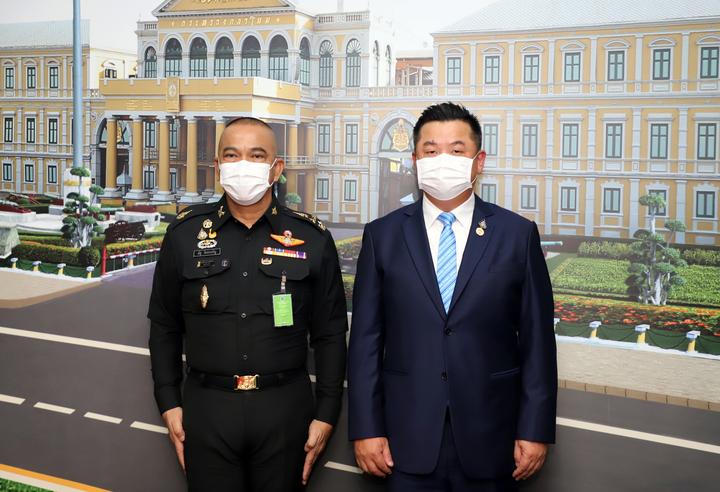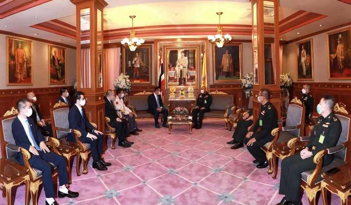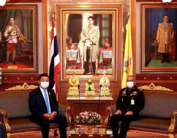 李嘉淳会长首先向纳.茵他乍伦上将报告了今天来访的目的。同时,也简单介绍了疫情在泰国爆发之后,我们青商会就迅速行动起来,组织会员募捐,在当时市场非常稀缺的情况下,购买医疗物资,陆续为泰国数十家单位捐赠了抗疫物资,为几百个偏远地区的医疗机构和民众送去口罩和大米,希望帮助他们渡过难关。今天我们来访,希望通过您将这批物资送到有需要的单位和民众手上,今后我们还会继续不断地为有需要的单位和个人捐赠物资,尽我们在泰国经商定居的新华侨新移民的微薄之力。随后李嘉淳会长简单介绍了青商会在泰国成立发展情况。他介绍说:泰国华人青年商会20年前由李桂雄永远名誉会长创立以来,在推动泰中友好关系,文化交流、经贸往来等方面做了很多工作啊;疫情期间,泰中两国经贸来往更加密切,泰国的果蔬等农产品非常受中国人民的喜爱,走俏中国市场,这也为泰国战胜疫情疫情提供了强大的信心,我们也会继续传承办会目的,为泰中友好作出努力。疫情面前,不分你我,泰国华人青年商会作为一家华人社团,一直走在抗疫的路上,期待我们用爱心的阳光驱散疫情的阴霾,用团结的力量守护人类共同的家园。