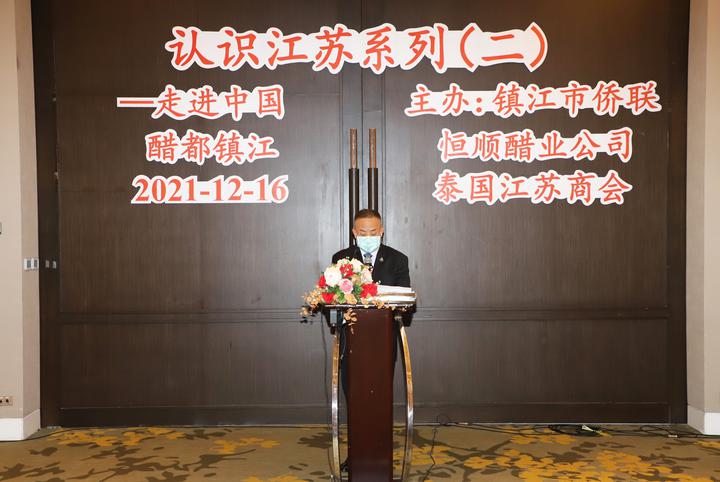 2021年12月16日下午,泰国江苏商会成功举办第二场认识江苏系列走进中国醋都镇江,泰国华人青年商会会长李嘉淳受邀参加,并向泰国江苏商会江永玲会长敬献鲜花表示祝贺!