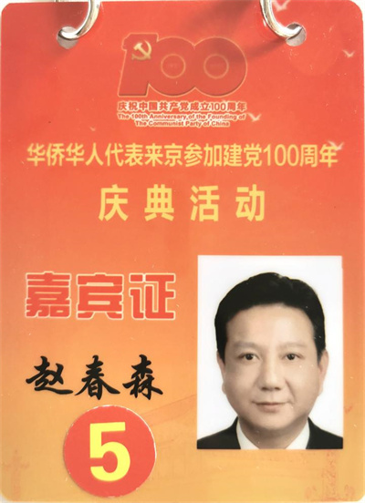 赵春森表示,作为华侨华人代表之一,我非常荣幸的亲历这个振奋人心的历史时刻,亲眼见证中国共产党之伟大和祖国之强盛!习近平总书记在庆祝大会上的讲话气度恢宏,慷慨昂扬,他庄严宣告:经过全党全国各族人民持续奋斗,我们实现了第一个百年奋斗目标,在中华大地上全面建成了小康社会,历史性地解决了绝对贫困问题,正在意气风发向着全面建成社会主义现代化强国的第二个百年奋斗目标迈进。这是中华民族的伟大光荣!这是中国人民的伟大光荣!这是中国共产党的伟大光荣!这一刻,我在大会现场激动得热泪盈眶。