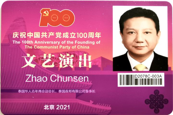 泰国中华总商会常务会董、泰国华人青年商会副会长、泰国中国和平统一促进总会副会长、泰中友好基金会副主席、中国侨联委员、中华海外联谊会理事、第十二届全国青联常委、上海市海外联谊会常务理事、上海市青联常委、广东省海外联谊会常务理事、上海市侨联委员、上海中国和平统一促进会常务理事、云南省侨联海外顾问、第十三届上海市政协会议列席代表、国际潮青联合会常务会董、泰中文化交流中心主任、泰国森邦集团董事长赵春森应邀参加大会。
