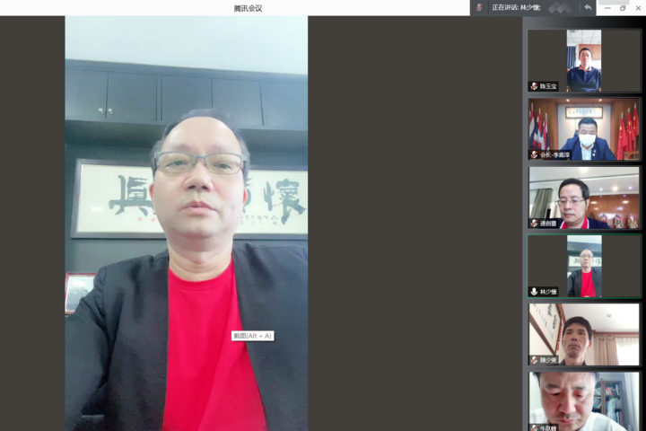 参加此次视频会议的有:会长李嘉淳,常务副会长林玮、陈玉宝、姚鸿春、陈汉国、史大佗,副会长郑树丰、赵春森、李宛情、杨艳峰、许晓东、周桂扬、廖以良、刘吉辉、陈金敦、陈耀盛、廖晓文、林晓东、陈卓平、许少玉、杨灿宜、周小彬、肖文彬、刘少毅,会长助理连剑丰、林少怀、牛耀峰、吴镇浩、刘汉政、孙丽玲、李泽明、副秘书长马嫣、李德生、林君、罗育豪、钟佳成、主任委员朱东雷、陈楚生、李艺良、姚华星、李裕泉,常务委员林树源、刘利勇、李鹏、陈志斌、赵子杰、张楚雄、陈少东、张伟雄、张锦湖、林政希、马兴海,执行委员黄蕊、沈志涛、武一帆、刘德霖、何业填、沈海城、黄世敏、符明、魏鹏、张政通,总干事李焕泽,干事孙敏、张园苑等60多位常执委。