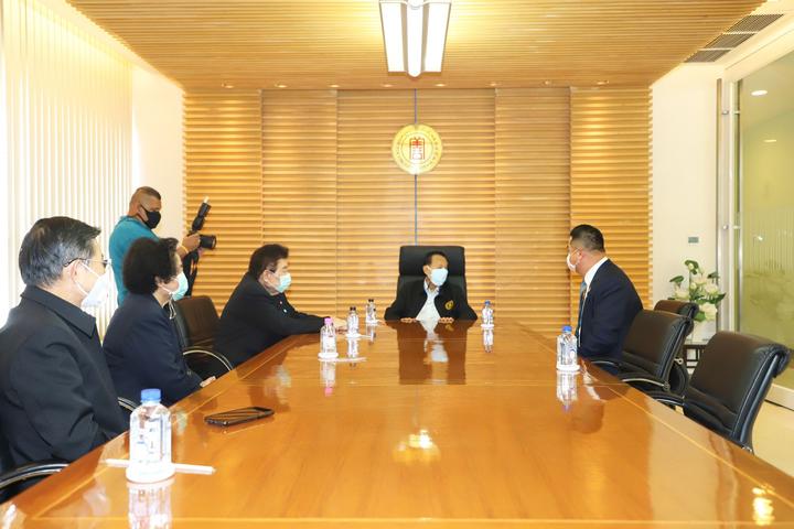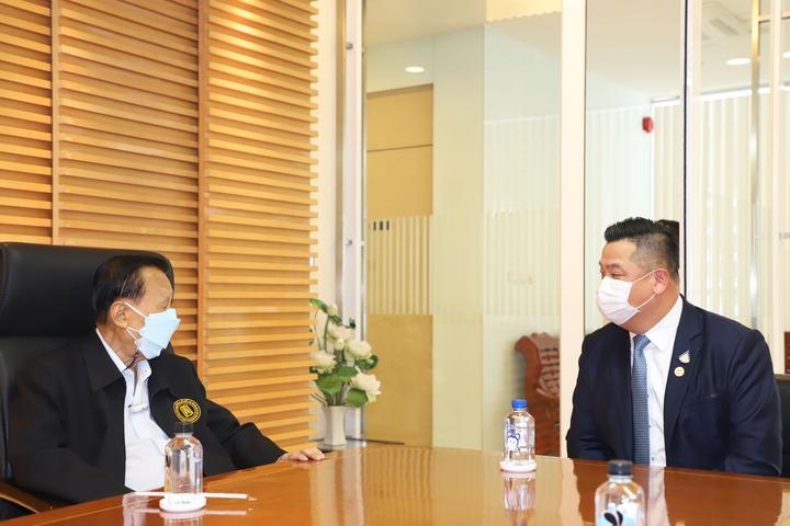会见中,李嘉淳会长首先转达李桂雄永远名誉会长向郑董事长、副董事长以及诸位董事问好。随后简单的介绍了第十一届执委会的会务发展情况。李会长说:我非常熟悉华侨报德善堂,在三十几年刚刚来到泰国的时候就已经常常目睹华侨报德善堂的善举。特别是己故郑午楼前董事长的很多事迹在华侨华人社会广泛流传,他的作为对华人华侨今时在泰国的地位也发挥了促进作用。报德善堂除了对特大事故及时帮助,每年布施活动也非常庞大,帮助了许许多多困难的民众。希望此次的捐赠,青商会能够在这特殊时期帮助报德善堂分担压力,为志愿者们提供一些安全保障。