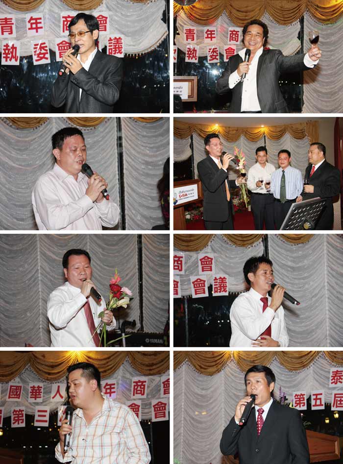 泰国华人青年商会一年来,在各位团结一致、持续的关心和支持下,会务稳定发展,去年一年,我会一共接待了一百多个来访团体,且为祖国许多省、市政府在泰国协办了经贸洽谈会、招商会等。商会也为会员做了多方面的服务和具有成效的工作,不论是在社会福利、慈善事业、扶贫救灾等活动中,我们商会同仁贡献不少。在促进泰中友好、文化交流和经贸往来,我们是桥梁。我们还要为泰中两国的稳定、繁荣进步、为泰华社会的和谐相处做出不懈的努力。