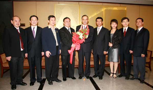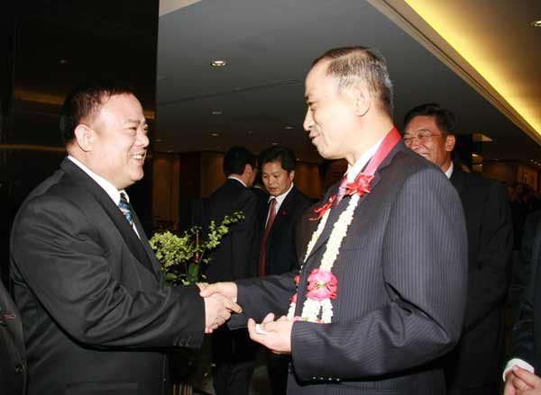 中华人民共和国驻泰王国特命全权大使管木阁下莅泰履新,于二月六日下午乘班机抵达泰国曼谷素旺那奔国际机场,受到本会会长李桂雄、副会长蔡荣庄、新闻主任武风、副秘书长马嫣、总干事黄成等的热烈欢迎。 图上:管木大使与李桂雄会长握手交谈时影。 图下:左起,泰国中华总商会陈一平总干事、中国大使馆高振廷参赞、武风主任、李桂雄会长、管木大使、蔡荣庄副会长、马嫣副秘书长、大使馆吕健代办、黄成总干事。