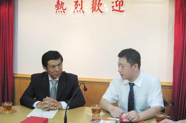 刘永熙副县长向青年商会推出了"养殖基地项目"、"小城镇改造项目"、"工业园区项目"和"陶瓷产品贸易项目",青商会对沈阳法库产生了兴趣,初步确定在今年5月底或6月初组团到沈阳实地考察。最后双方互赠纪念品留念。