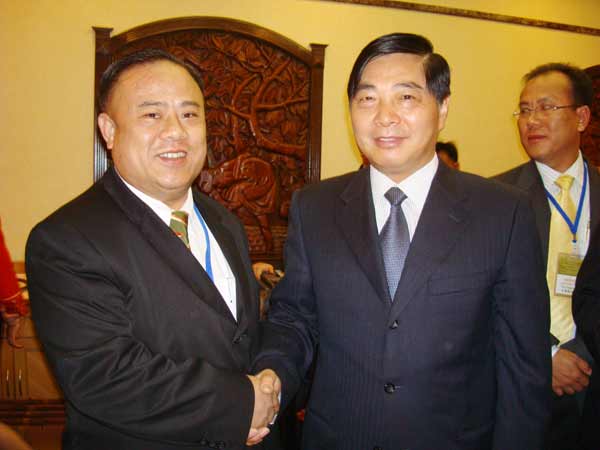 图一:4月25日,云南省省委常委、昆明市市委书记仇和亲切接见李桂雄会长。