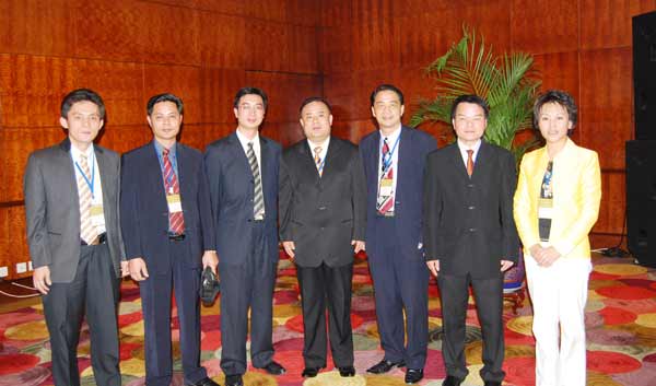 泰国商业部阿隆功.蓬拉布副部长与本会代表李桂雄、蔡荣庄、刘开文、陈子震、徐位林、谢淼鑫、胡运生等合影。