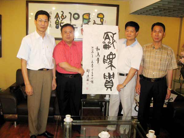 2009年5月4日,本会会长李桂雄、副会长邝锦荣、会长助理陈细金等拜访广东省著名书法家邹建雄(右二),受到邹老师的热情接待并赠送篆体书法墨宝。
